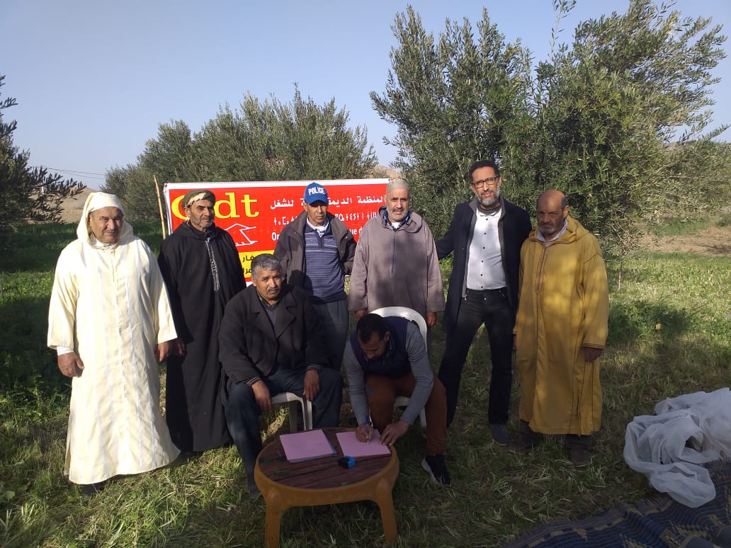 في إحدى الضيعات الواقعة بجماعة أولاد دليم، نواحي مدينة مراكش، تم تنظيم لقاء جمع بعض فلاحي المنطقة وذلك في إطار حفل توقيع شراكة بين المنظمة الديمقراطية للفلاحين الصغار وتعاونية ” كرم ” لإنتاج الزيتون و مشتقاته بنفس الجماعة وحسب تصريحات كل من السيد “محمد ايت الرامي” الكاتب العام المحلي للمنظمة، و السيد “يوسف العثماني” رئيس التعاونية المذكورة فإن من أهم أهداف هذه الاتفاقية꞉