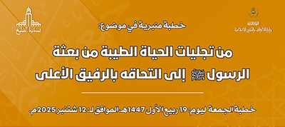 خطبة منبرية بعنوان: “من تجليات الحياة الطيبة من بعثة الرسول صلى الله عليه وسلم إلى التحاقه بالرفيق الأعلى” ليوم الجمعة ليوم 19 ربيع الأول 1447هـ الموافق لـ 12 شتنبر2025م